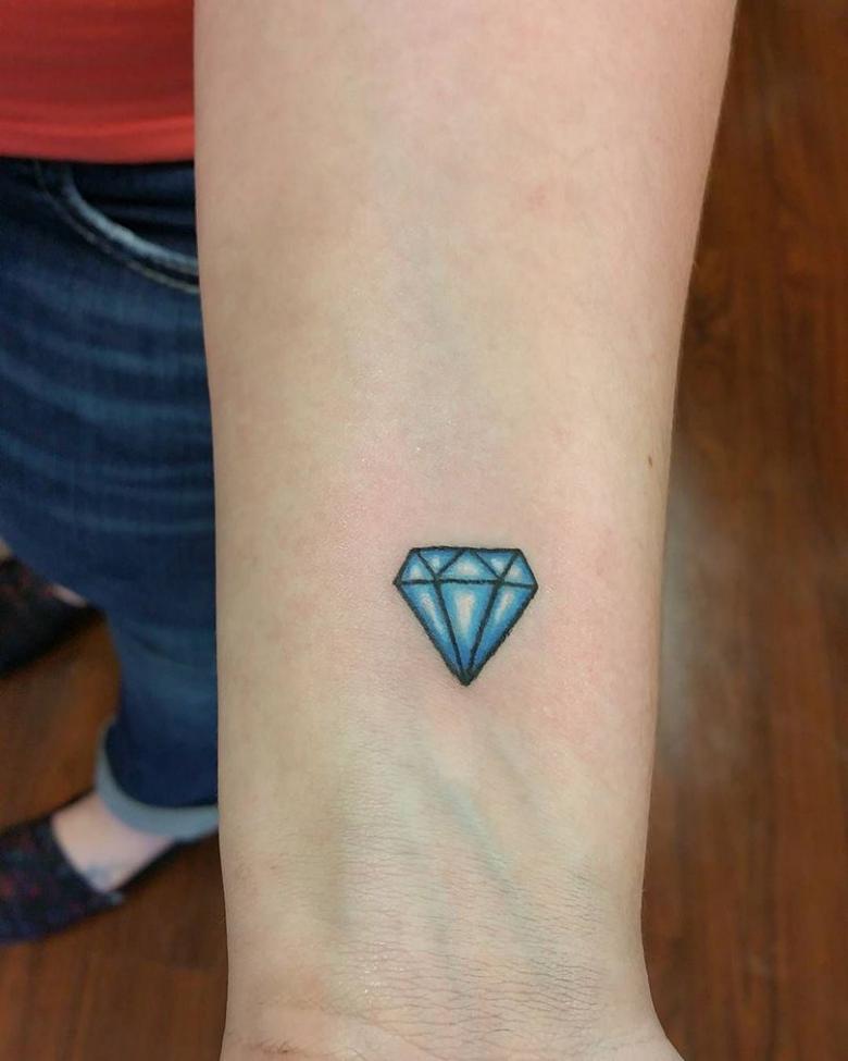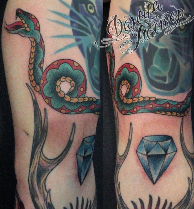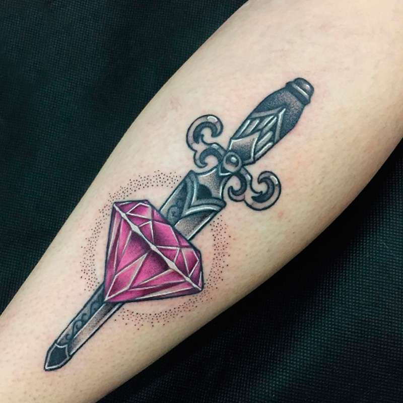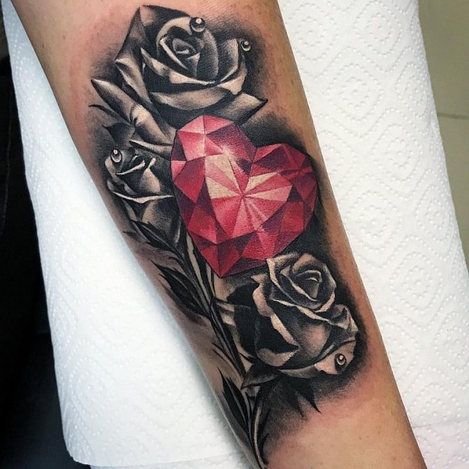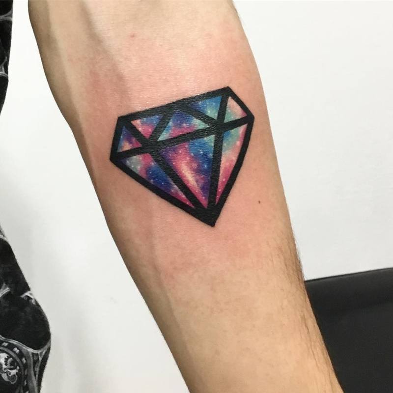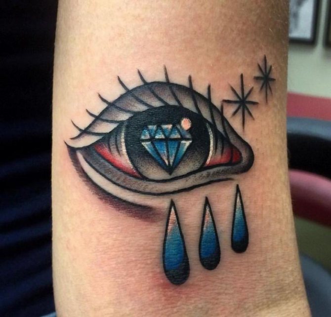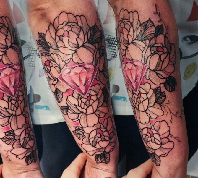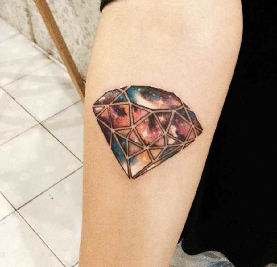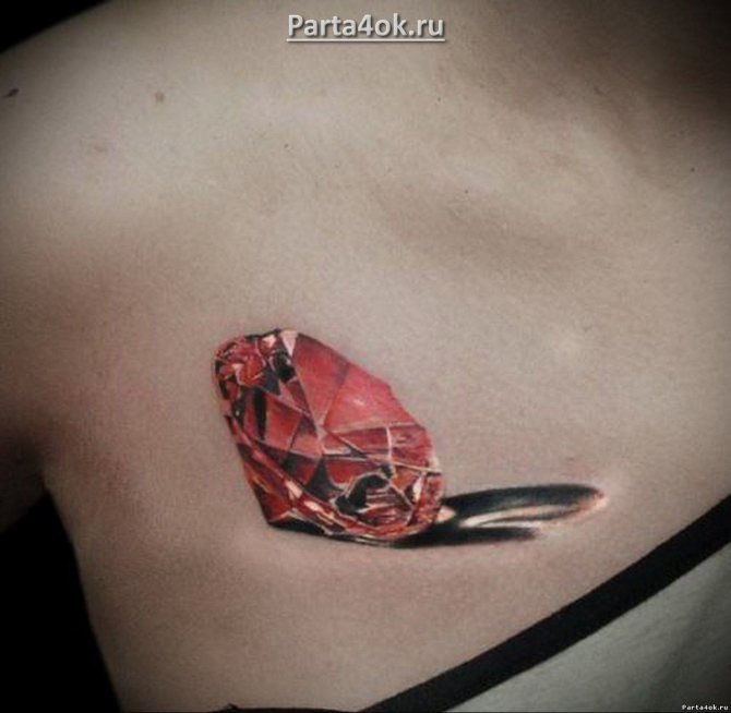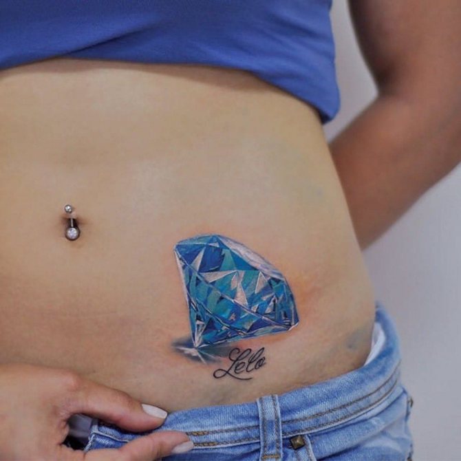 Vous ne pouvez pas détacher vos yeux de l'image colorée d'un tatouage en forme de diamant. Les joailliers aiment cette pierre précisément pour le jeu de couleur et de lumière sur ses facettes. Mais il n'est pas rare de voir une image simplifiée d'un tatouage (Petersburg) en une seule couleur.