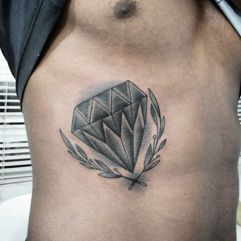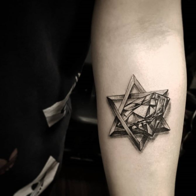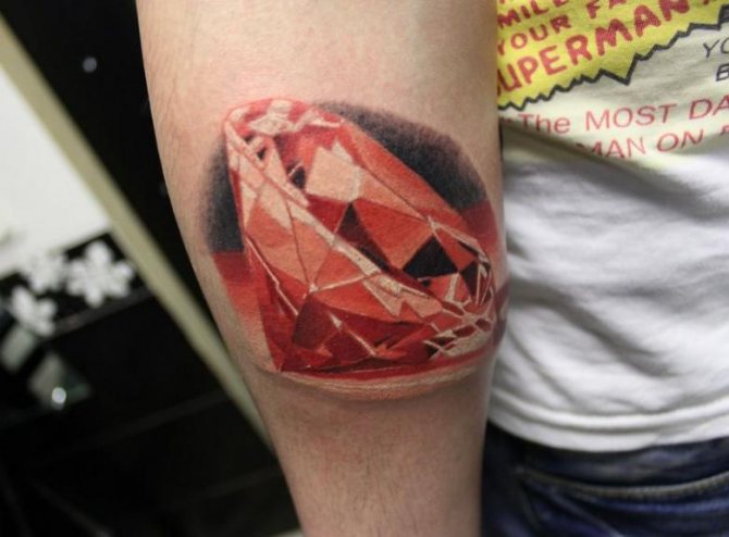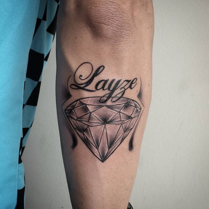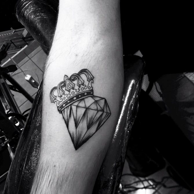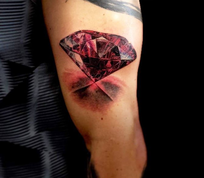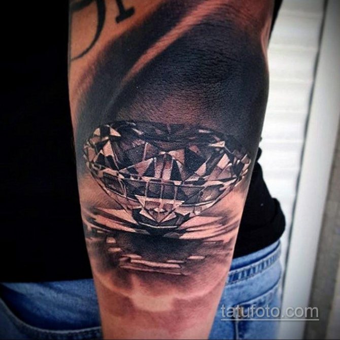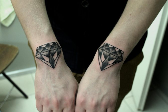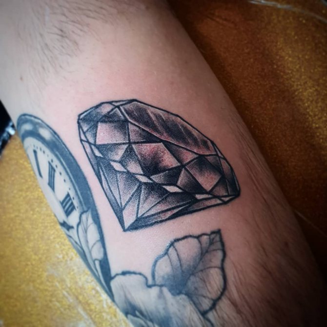 Pour l'homme, un tatouage avec un diamant - un symbole de l'esprit, du courage, de la fermeté, de la force de volonté, de la débrouillardise, d'une conviction inébranlable de l'aspiration à atteindre les buts, à la prospérité matérielle et à l'indépendance spirituelle.