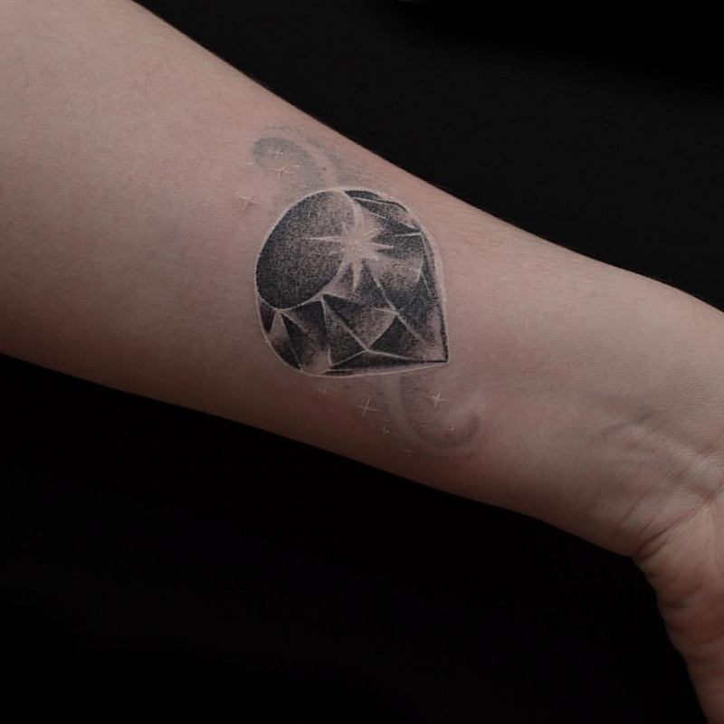 Les images du noble diamant à facettes gagnent en popularité auprès des tatoueurs. Chaque client du studio de tatouage Maruha essaie d'exprimer sa sympathie pour ses qualités préférées et ses significations.
