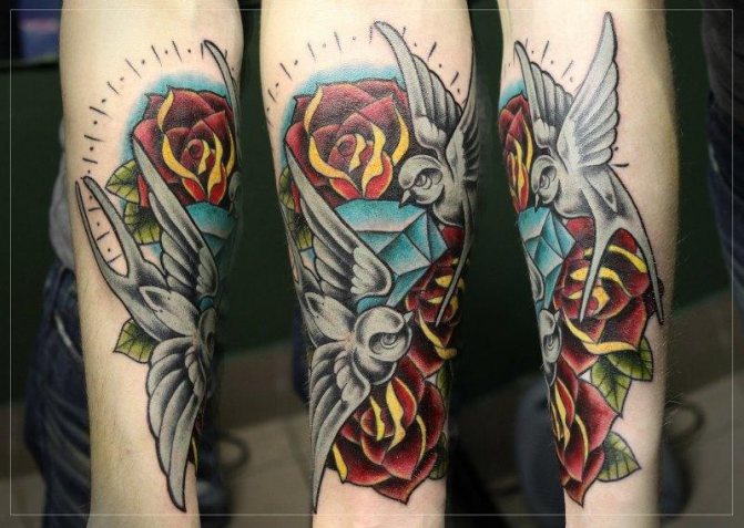 Si vous souhaitez montrer la richesse du monde intérieur et de la lumière, le maître tatoueur de notre studio vous conseille bleu, rose et lilas la palette de couleurs. Un artiste expérimenté sera même capable de transmettre l'éclat d'une coupe en utilisant différentes nuances de couleur.