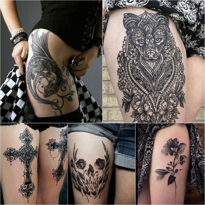 Un tatouage sur la hanche a un énorme avantage, il peut mettre en valeur les vertus, la beauté des lignes et des courbes. Un tatouage sur la cuisse permet de cacher visuellement les défauts et de montrer la silhouette sous son aspect le plus avantageux. Les tatouages féminins sur la hanche sont très sexy, esthétiques et coquets.