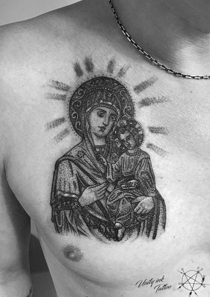 Selon la religion, l'image d'une icône particulière a des significations différentes. Les personnes qui se font tatouer des icônes ont essayé dans les temps anciens d'exprimer leur dévotion à leur foi, à Dieu.