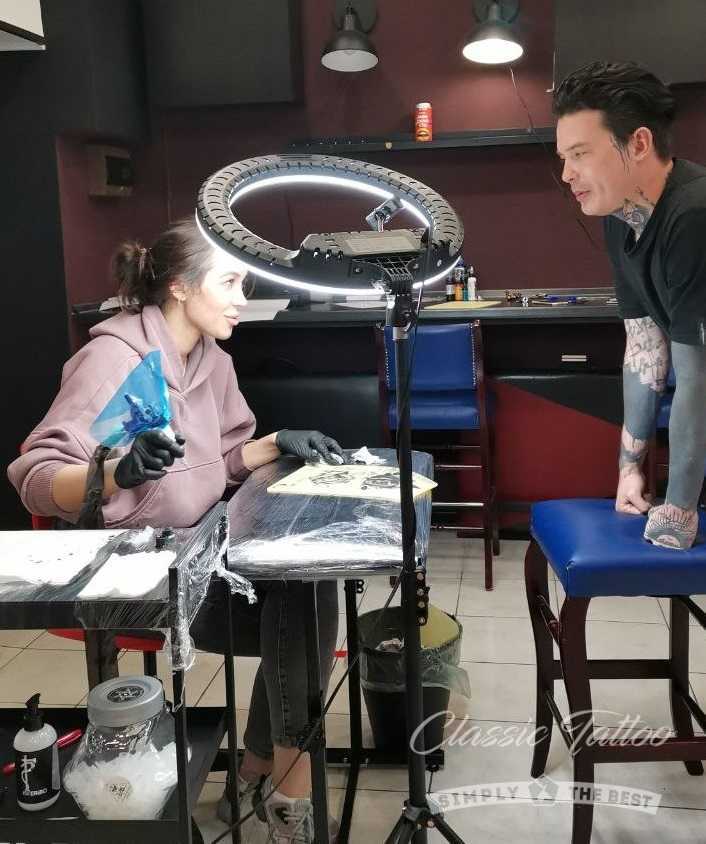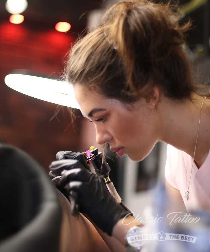 Le studio de tatouage "Classic" fonctionne depuis plus de 6 ans. Dans l'arsenal des services du studio, outre le dessin, l'effacement et la correction des tatouages, il existe un service de formation au tatouage pour les tatoueurs débutants. Les cours de tatouage sont dispensés par des praticiens expérimentés ayant plus de 10 ans de théorie et de pratique du tatouage et du mentorat. Chaque artiste dispose d'une formation artistique, d'un portfolio de qualité de ses propres travaux et d'un programme de formation personnalisé et affiné.