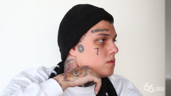 - Le premier tatouage est apparu chez moi à 14 ans. Je vivais à l'époque à Kurgan, qui était une décharge, pour dire la vérité. J'ai rencontré des gars qui étaient juste assis dans un parc et jouaient de la guitare. J'ai traîné avec eux et grâce à eux, j'ai rencontré un tatoueur. Il m'a suggéré de me faire tatouer. Je me disais : "Merde, j'ai 14 ans, quels tatouages ?" Mais il m'a donné matière à réflexion, et après un certain temps, j'ai décidé d'en acheter un. Ça a fini par être un dragon hideux et un hiéroglyphe en dessous. C'était censé signifier le bonheur ou la bonne chance ou quelque chose comme ça. De toute façon, ce n'est pas un fait que je n'avais pas le mot "cul" écrit dessus. De toute façon, j'avais déjà superposé ce dessin avec un autre.