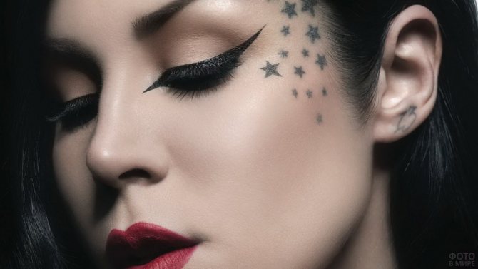L'histoire de l'émergence d'une variété d'images sur le visage remonte loin dans le temps. La mode originale de ces décorations est apparue dans certaines sous-cultures, et il s'agissait initialement d'un piercing. Il s'est avéré par la suite que les tatouages n'étaient pas moins spectaculaires. Pendant de nombreux siècles, les dessins n'étaient pas seulement de nature esthétique, et étaient utilisés par les chefs de tribus ou les nobles pour démontrer leur statut, leur position dans la société, racontaient la profession de l'hôte et ses mérites militaires, mais remplissaient également certaines fonctions violentes. Les tatouages étaient appliqués sur le visage des esclaves ou des prisonniers, et les criminels en étaient marqués au fer rouge. Dans la plupart des versions, les tatouages de nos ancêtres se présentaient sous la forme de lignes ou de traits. Parfois, il y avait de petits dessins ou des symboles différents. Aujourd'hui, nous vivons dans un temps très différent, et perçoivent différemment le monde et tout autour, donc parmi les tatouages sur le visage, nous pouvons voir n'importe quoi, mais c'est une histoire complètement différente, et à ce sujet un peu plus tard dans notre article.