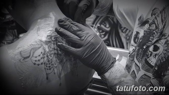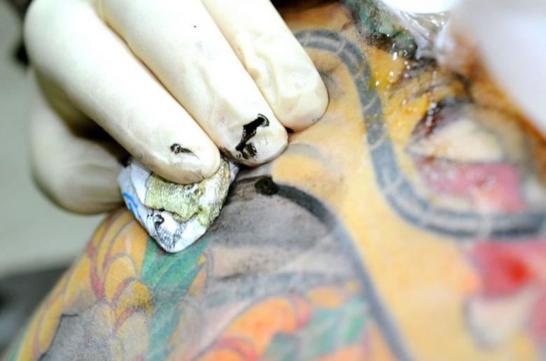 Une fois la procédure terminée, le maître recouvre le tatouage d'une feuille d'aluminium. C'est nécessaire car si une infection pénètre dans des lésions cutanées fraîches, elle peut s'aggraver. Par la suite, l'état du tatouage dépendra uniquement du porteur.