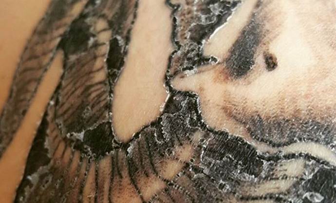 Après l'application d'un tatouage, le processus normal commence lorsque la peau pèle et démange. Ce sont des signes que les plaies commencent à guérir avec l'apparition d'une croûte. Il est interdit de toucher ces endroits avec les mains, et encore moins d'essayer d'enlever les croûtes, afin de ne pas déformer davantage la teinte du dessin.