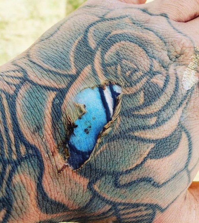 La durée de la disparition complète de la peau des croûtes est propre à chaque personne, mais elle est en moyenne d'au moins un mois. Une préoccupation est causée par un ancien tatouage, lorsque des rougeurs et des brûlures apparaissent quelque temps après la cicatrisation. Cela peut être un signe d'infection.