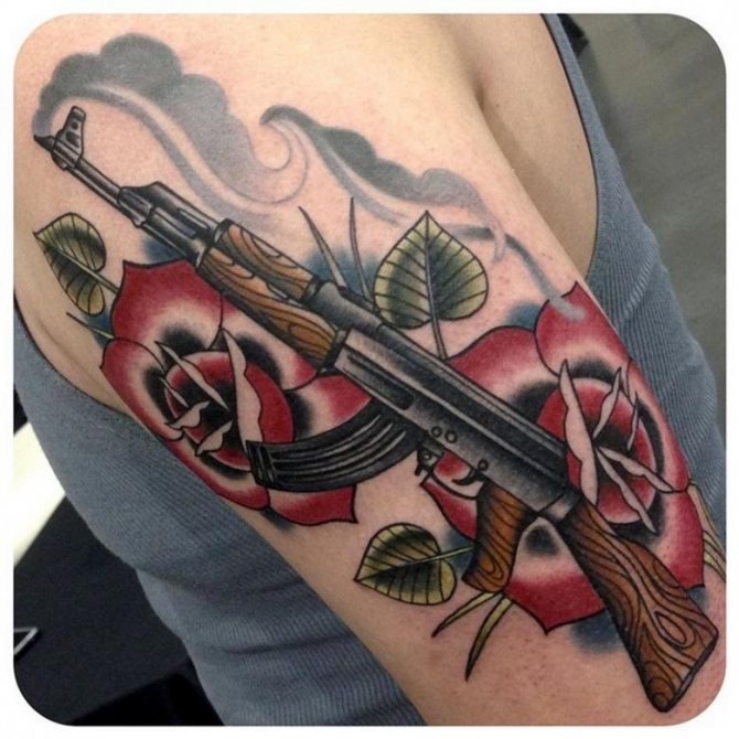 Parfois, ceux qui souhaitent orner leur corps d'un beau tatouage choisissent des combinaisons d'armes :