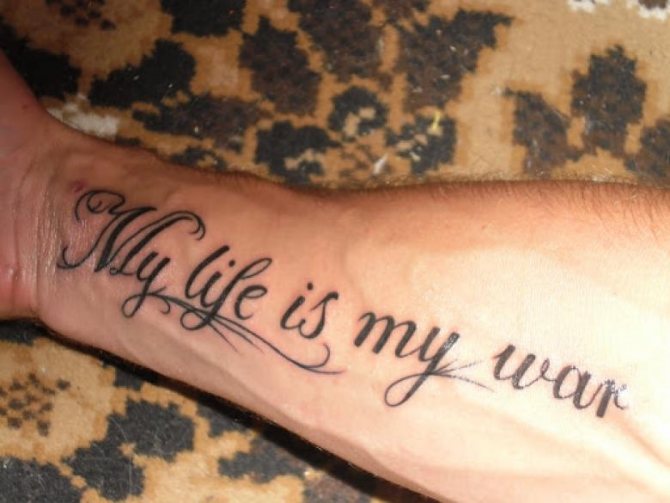 Pour les tatouages ayant une signification, ces dernières années, les filles choisissent de plus en plus souvent des mots et des phrases en russe. Il est riche en mots beaux et succincts, en unités phraséologiques et en proverbes spirituels, ainsi qu'en aphorismes sages des classiques.