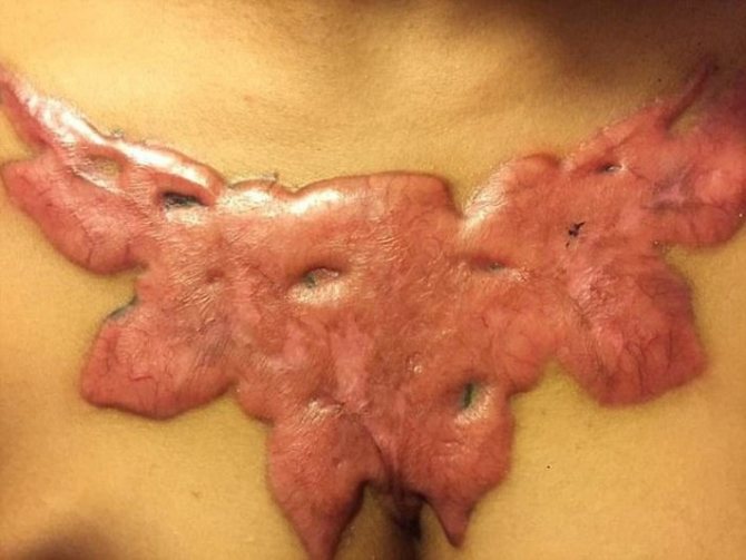 La cicatrisation des tissus. Après avoir retiré une partie du motif, une grande cicatrice inesthétique peut rester à sa place.