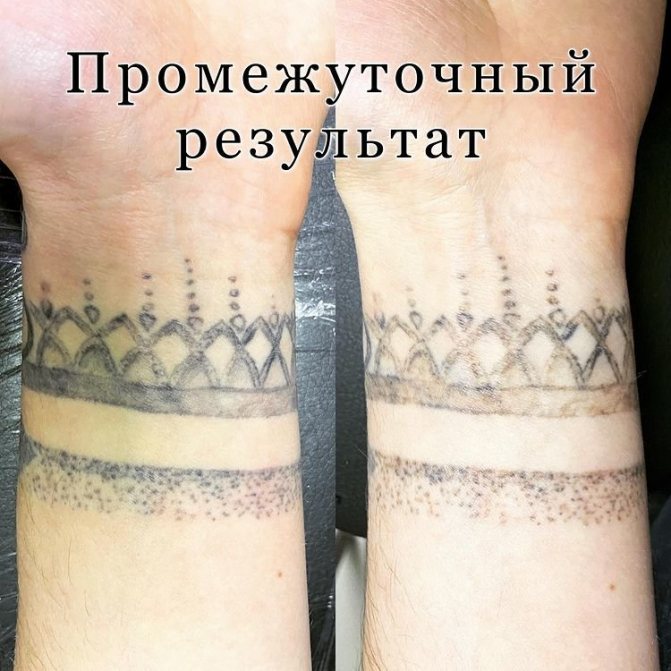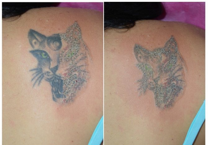 Le processus d'élimination de la pigmentation peut durer jusqu'à deux mois, le tatouage s'estompe et disparaît progressivement. Le temps que prend ce processus dépend de l'individualité du corps.