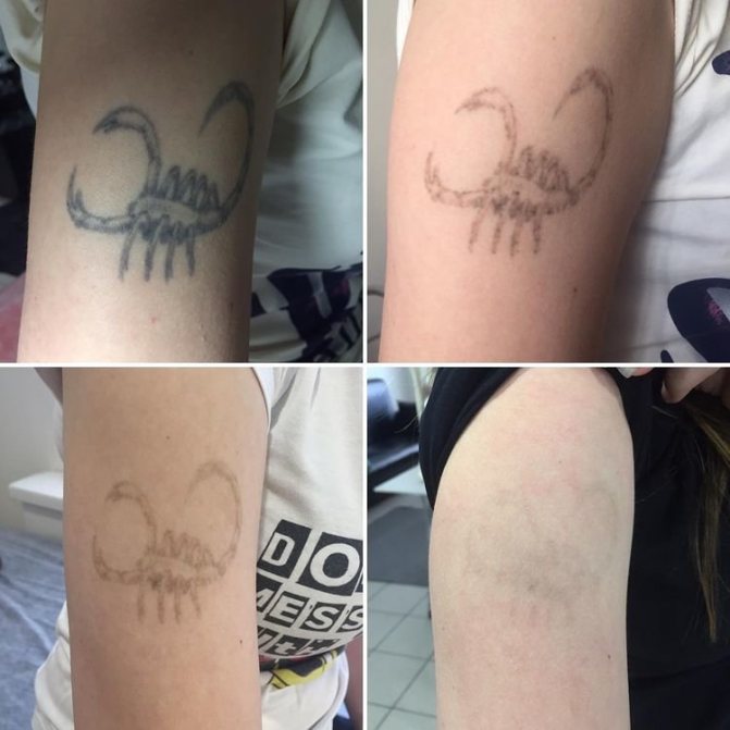 En général, pour l'élimination complète du tatouage, vous aurez besoin de plusieurs procédures, la période totale allant d'un mois à un an - la durée dépend de la profondeur de l'encre et de la quantité de travail.
