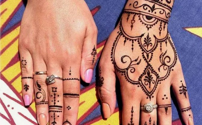 Le Mehendi est une coloration au henné. Il peut être appliqué sur différentes parties du corps telles que les bras, les épaules, les jambes, le dos et le ventre. La tradition consistant à s'embellir avec de beaux ornements est née en Inde et au Moyen-Orient. Au début, les artisans et les aventuriers amateurs peignaient le henné sur les jambes des femmes, puis ont commencé à appliquer les motifs sur d'autres parties du corps également. Le Mehendi était interdit aux filles non mariées. À la même époque, en Inde, la cérémonie de mariage était étroitement liée à la tradition consistant à décorer la mariée de dessins au henné. Avant le mariage, le marié offre un cadeau à sa future épouse : une boîte de henné. Et la veille de la célébration, la moitié féminine de la famille dessinait des motifs complexes sur les mains et les pieds de la mariée, qui portaient des messages secrets au futur époux et étaient considérés comme sacrés. Le mariage indien était célébré aussi longtemps que durait le mehendi sur le corps de la mariée.