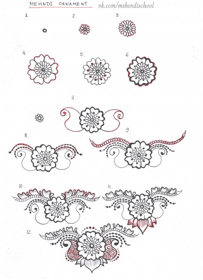 - Avant de commencer à peindre le mehendi sur votre peau, vous devez vous entraîner à reproduire les différents éléments des motifs et déterminer la position correcte du cône de henné dans votre main. Il est préférable de s'entraîner d'abord sur une feuille de papier. N'épargnez pas le henné, achetez un tube de henné spécialement pour l'entraînement et utilisez-le immédiatement pour "fixer votre main". Lorsque vous pouvez dessiner des lignes plus ou moins nettes sur le papier, vous pouvez essayer de gribouiller sur n'importe quelle surface en verre. Plus vous pratiquerez, plus votre main deviendra dure, plus les lignes seront claires et les motifs nets.