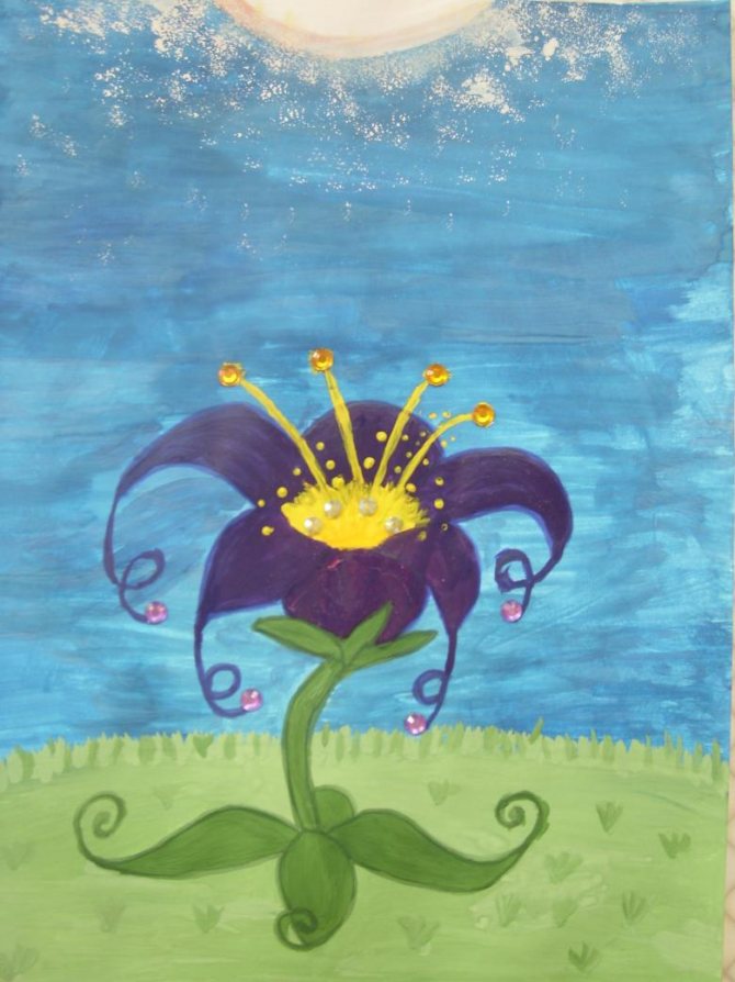 La leçon peut être complétée par un exercice de coloriage à l'aide de peintures (aquarelle ou gouache), de feutres ou de crayons. Vous pouvez intéresser votre enfant en utilisant des couleurs vives et décorer le tableau avec des paillettes dispersées sur les couleurs qui n'ont pas encore séché.