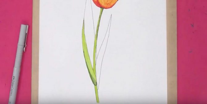 Il existe une grande variété de couleurs parmi les tulipes. Cela vaut la peine d'essayer de dessiner la fleur de flamme étape par étape avec des crayons de couleur.