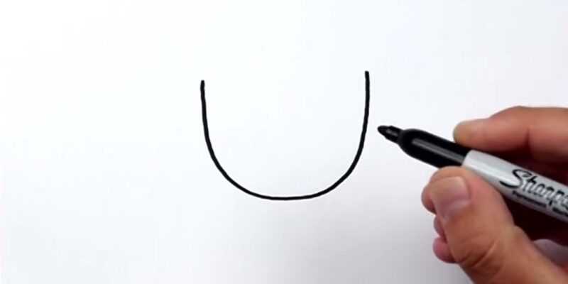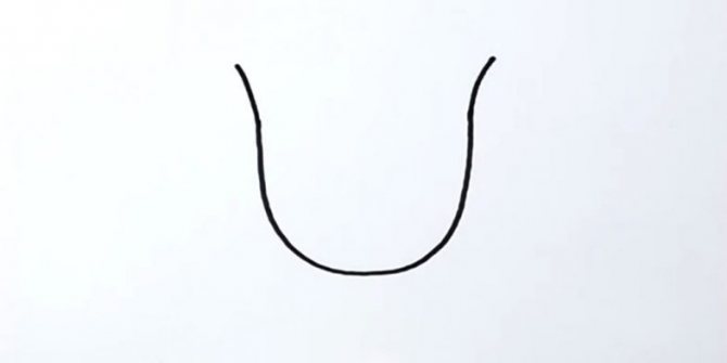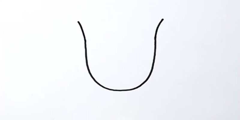 - De la même manière, dessinez une forme identique sur le côté gauche de l'image. Allongez les lignes de la forme en cloche. Ensuite, des arcs relient la partie supérieure de l'esquisse à la partie inférieure.