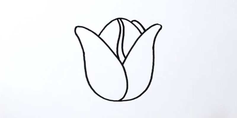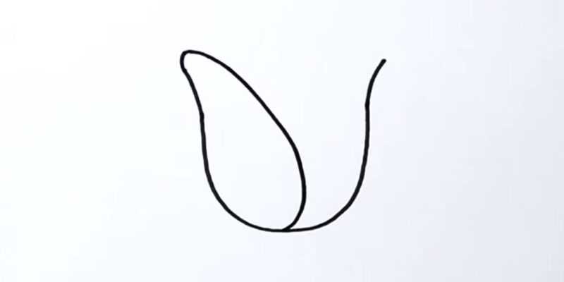 - À partir du bord supérieur du bourgeon, reculez un peu vers la droite et dessinez un arc. Maintenant, à partir du milieu de la ligne verticale ondulée, dessinez la deuxième partie de ce contour et reliez-les ensemble.