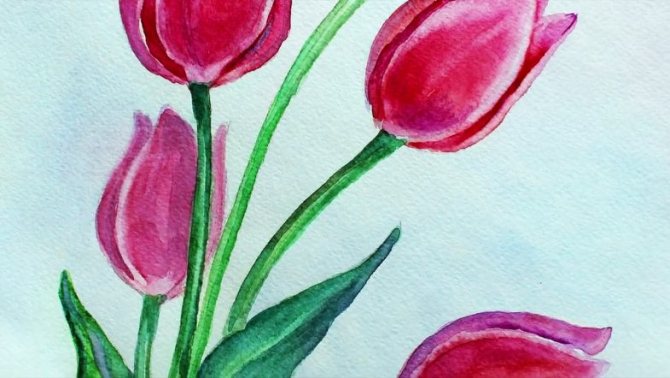 Après avoir maîtrisé la technique du crayon de couleur, vous pouvez passer au dessin de tulipes à l'aquarelle ou à la gouache.