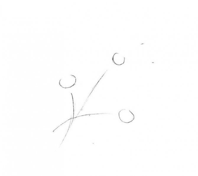 Dessinez deux pétales sur les côtés. Leur taille sera différente en raison de l'inclinaison de la plante. Le pétale de gauche est deux fois plus grand que celui de droite :