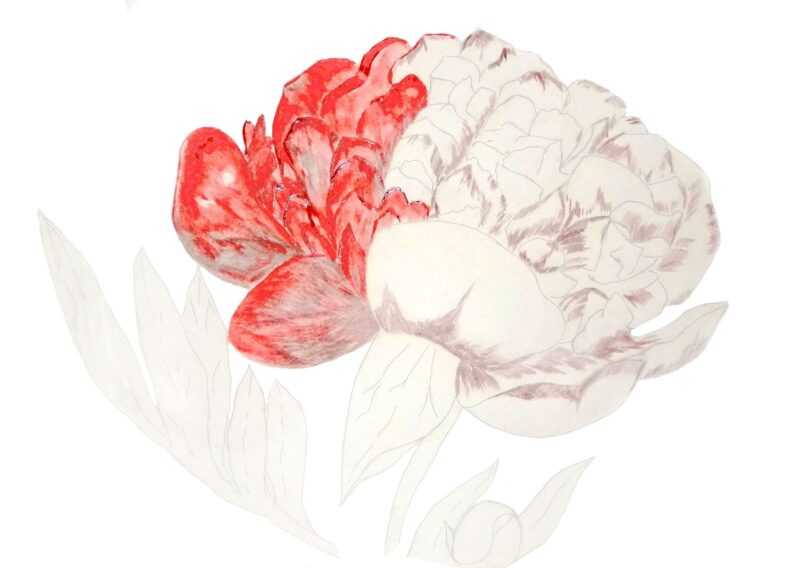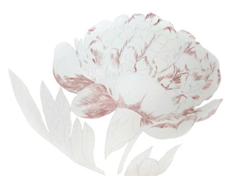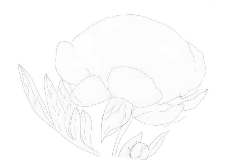 - Tracez le contour de la fleur, en traçant tous les détails. Ombragez les zones de la fleur qui sont dans l'ombre. Tous les pétales pliés doivent être légers.
