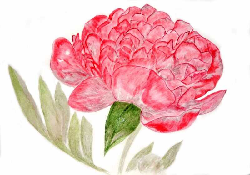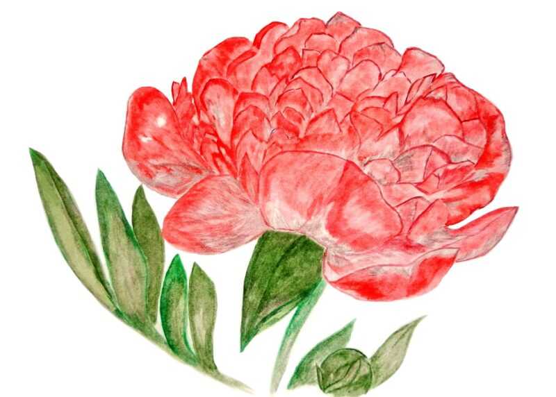 - Ensuite, tracez une ligne épaisse autour du contour de la plante, même si vous avez utilisé un crayon. Peignez l'intérieur du contour avec un crayon rose ou rouge. Les feuilles et la tige sont vertes.