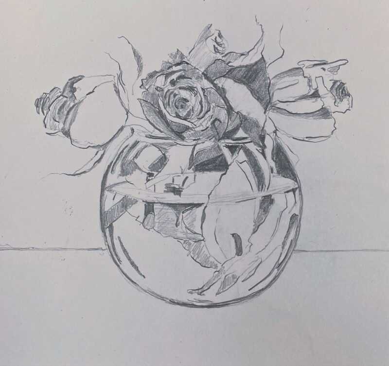 - Faites un croquis au crayon de la base de la future rose en forme de bol, ou plutôt de cruche avec un col ovale au sommet.