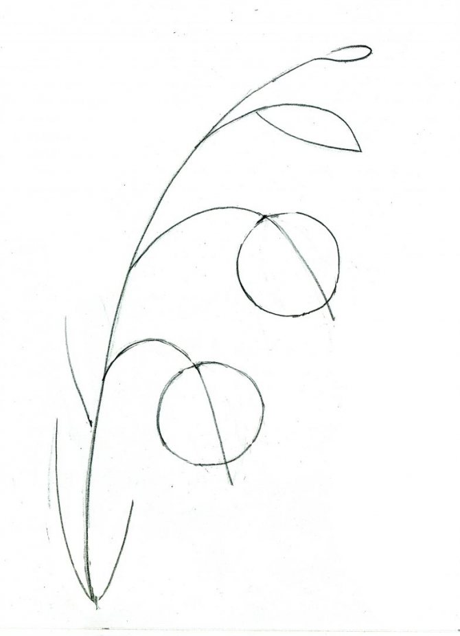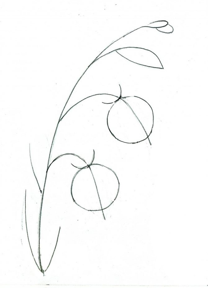 - Dessinez deux feuilles arrondies sur la tige, en ombrant et en soulignant les veines.