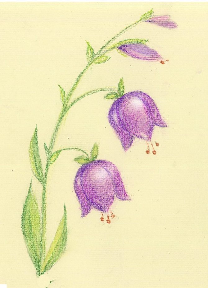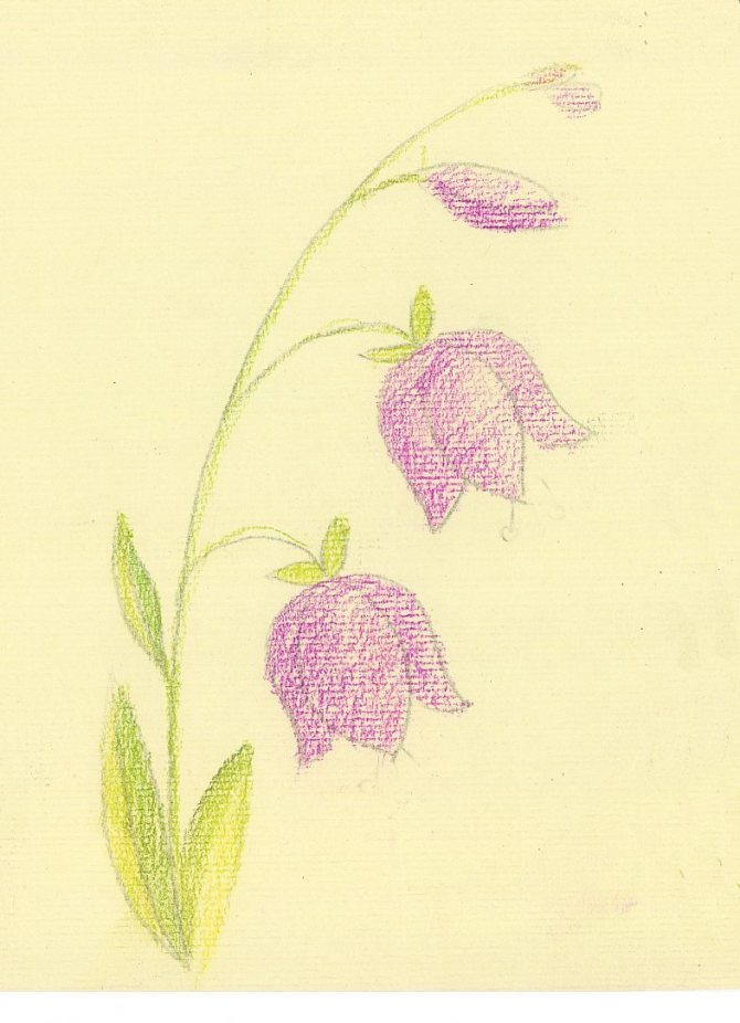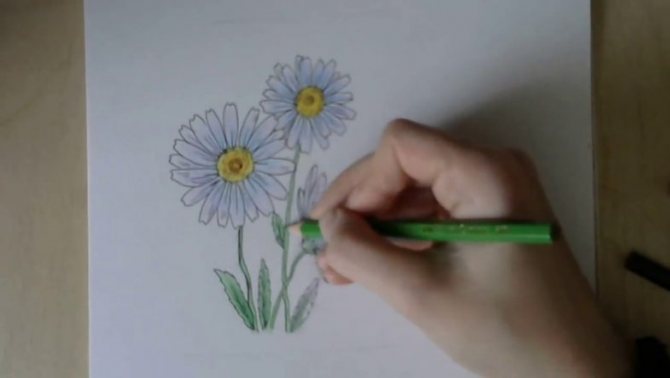 - La tige et les feuilles peuvent être ombrées au crayon vert, en assombrissant certaines zones en appuyant fermement sur le crayon. Les limites des zones assombries peuvent être tracées en bleu.