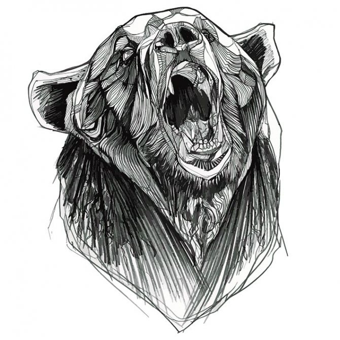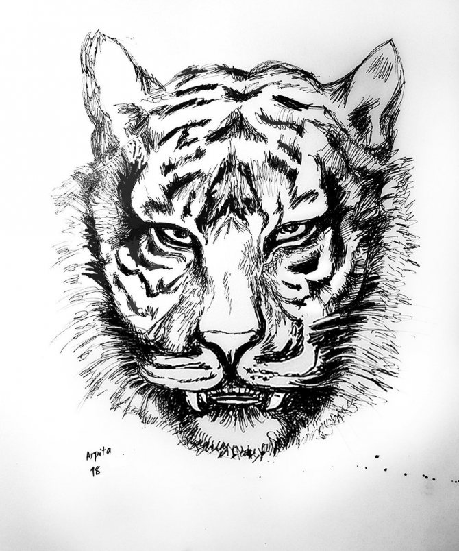 - Absence de transitions et d'ombres dans le dessin. L'ombre dans le croquis est indiquée à l'aide de tirets, qui sont également réalisés dans une couleur noire saturée.
