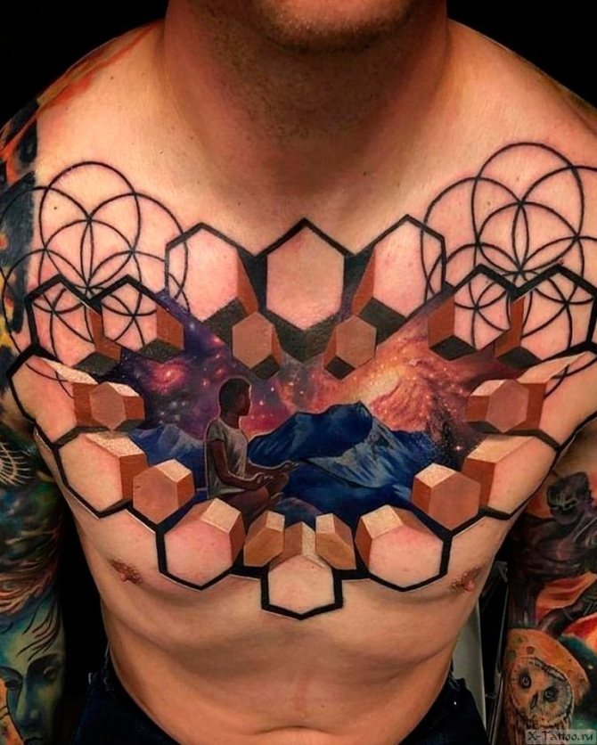 Les tatouages composés de diverses figures géométriques appartiennent à la technique de la géométrie.