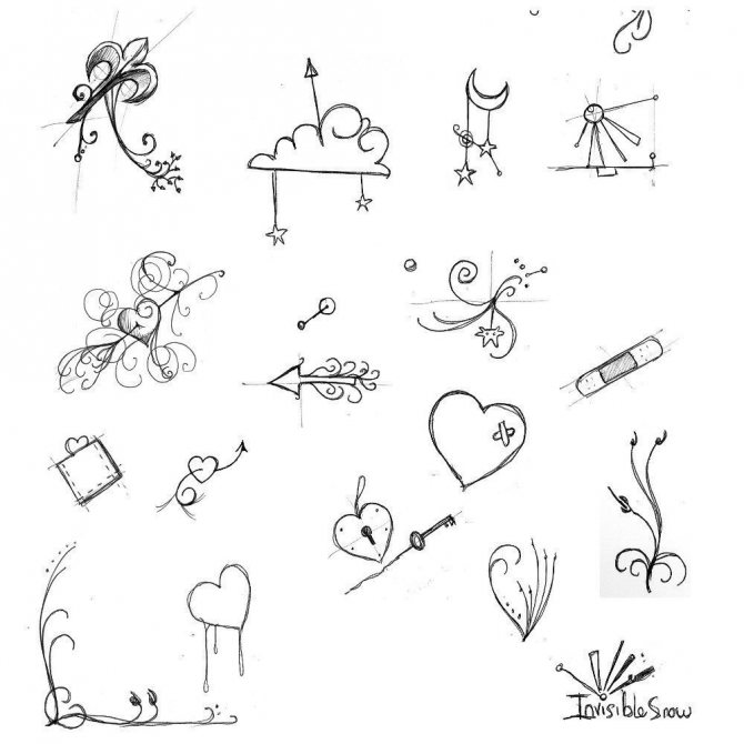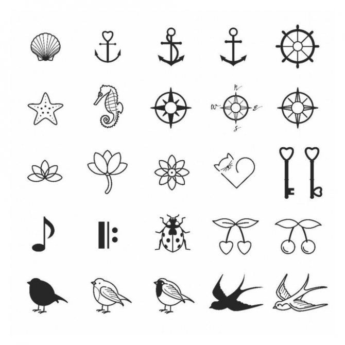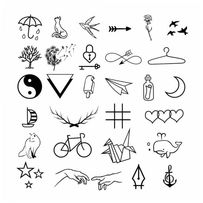 Ce type de tatouages, bien que caractérisé par la simplicité, ne vous oblige pas à arrêter le choix sur les dessins d'un certain thème. Ces motifs étonnent par leur variété et jouissent d'une popularité considérable auprès des membres des deux sexes. Un regard très original sur l'image du corps : des animaux, des dessins variés sur un thème floral, des motifs inhabituels, des amulettes, des symboles, des lettres, des inscriptions de tatouage et des mini-images soignées. Et ce n'est pas toute la liste, bien sûr. Les bijoux portables ne doivent pas être plus qu'un mince contour ou un simple détail. Le choix dépend de votre préférence.