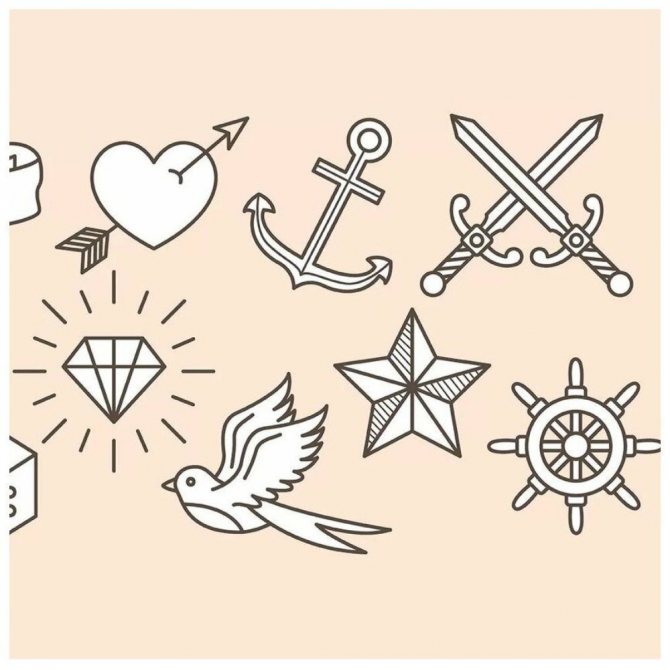 - Old-school - apparu il y a presque 100 ans, mais aujourd'hui à nouveau au sommet de la popularité. Les éléments principaux sont les ancres, les voiliers, les hirondelles.
