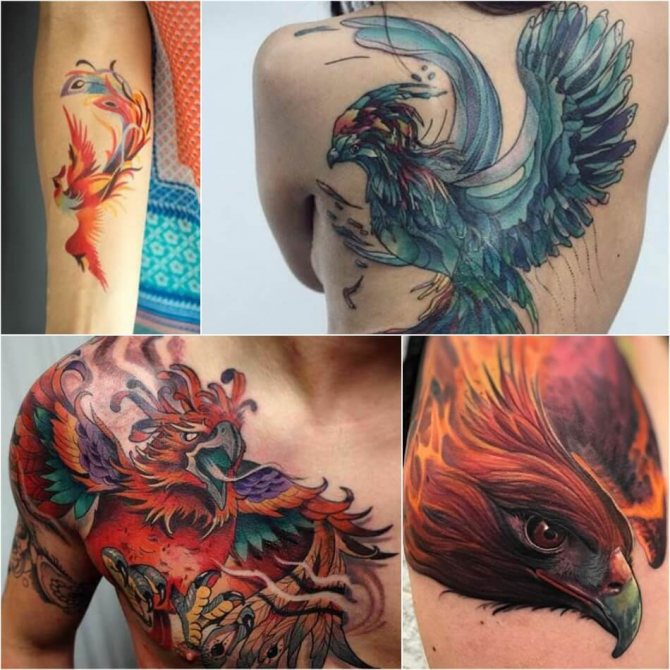 Les tatouages d'oiseaux ainsi que les tatouages d'animaux sont populaires depuis les temps anciens. Dans les temps anciens, les gens se tatouaient des images d'oiseaux sur le corps, car ils pensaient que ces tatouages étaient protecteurs et qu'ils leur donnaient un pouvoir spirituel. En tant que tels, les oiseaux sont associés au ciel, au soleil, à la liberté et aux êtres divins supérieurs. Certaines cultures associent l'oiseau aux âmes des défunts et le considèrent comme un fil invisible reliant le ciel et la terre. Représenter un oiseau sur le corps a une certaine signification. Par exemple, une colombe est un symbole de l'esprit divin, un aigle de la force, de l'endurance et de la fierté. Aujourd'hui, il est très courant de voir un tatouage représentant un oiseau fictif, le phénix.