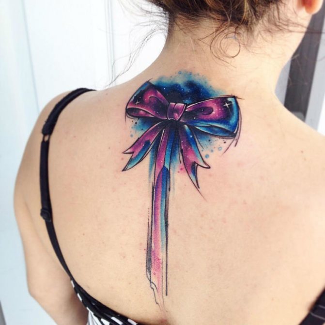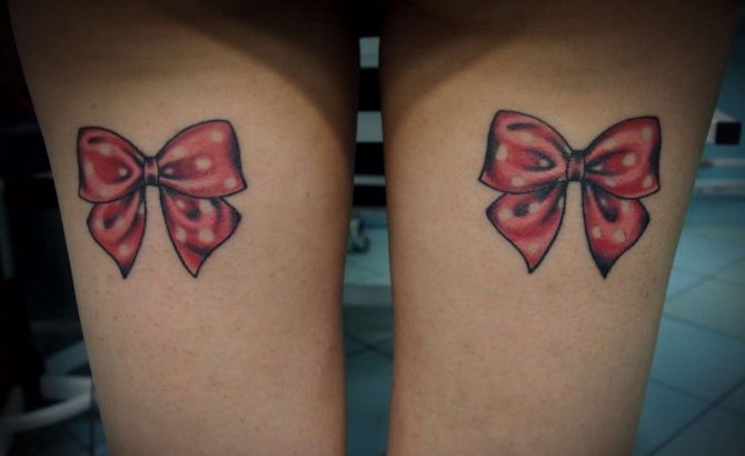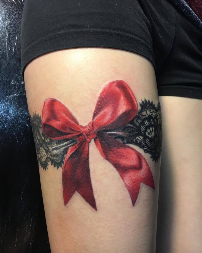 Le tatouage en forme d'arc est très populaire chez les femmes. Les arcs sont représentés sous différentes formes et tailles. Aujourd'hui, rencontrer un tel tatouage dans la vie quotidienne peut être très fréquent. Les propriétaires du tatouage en forme d'arc veulent souligner leur féminité, leur sexualité et leur gentillesse. Le nœud de tatouage donne une image féminine piquante et sexy.