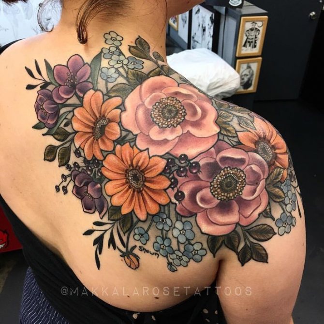Une grande popularité, surtout parmi le beau sexe, jouit du tatouage avec l'image de diverses fleurs. En outre, le corps peut être représenté par une seule fleur ou créer des compositions entières de plusieurs fleurs. Le symbolisme du tatouage de fleur est très mystérieux. Les significations nous sont parvenues de la mythologie et des cultures de différents peuples. Tout tatouage floral est très beau et a une certaine signification profonde. Les fleurs symbolisent par nature la nature, la beauté, la tendresse, le mystère et la diversité. Dans les différents pays et cultures, chaque fleur avait une signification particulière et un but individuel. Aujourd'hui, les tatouages de fleurs les plus populaires sont le lotus, le sakura, la rose et le lys.
