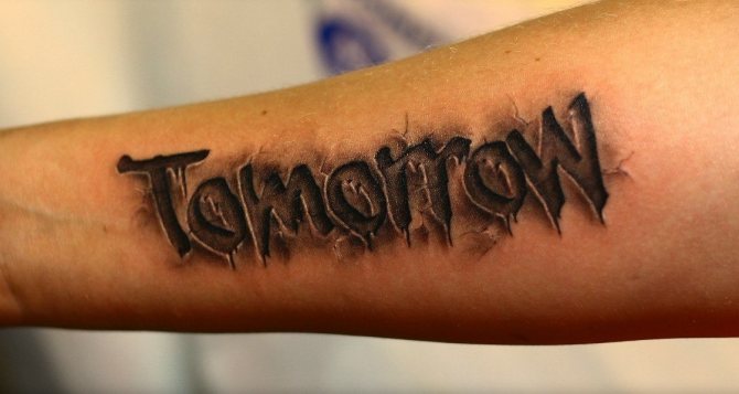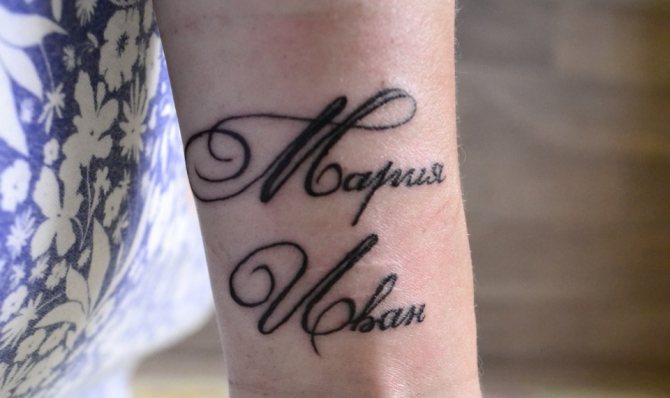 Aujourd'hui, les tatouages sous forme d'inscriptions de noms sont au sommet de leur popularité. De nombreux amateurs de tatouages préfèrent inscrire le nom de leurs proches ou de leurs enfants sur leur corps. L'endroit le plus populaire pour un tel tatouage est le bras ou le poignet, moins courant est la cheville ou le dos. Une telle image peut être exécutée en un mot ou créer une belle composition tridimensionnelle. Une attention particulière est accordée au choix de la police de caractères qui sera appliquée au nom. Si l'on souhaite mettre en valeur leur personnalité, on peut choisir des hiéroglyphes. Lorsque vous choisissez un tel tatouage, vous devez être sûr de votre décision.
