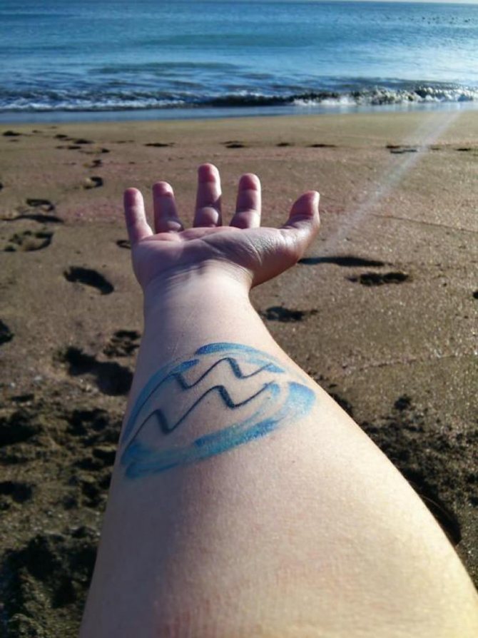 Les tatouages féminins portant le signe astrologique du Verseau sont appliqués avec des lignes d'eau douces, sans angles ni bords vifs. Pour ajouter un caractère unique au tatouage, pour souligner vos caractéristiques et vos désirs individuels, vous pouvez utiliser une variété d'ornements, de gouttes d'eau, de plantes aquatiques et de fleurs - lys, lotus.