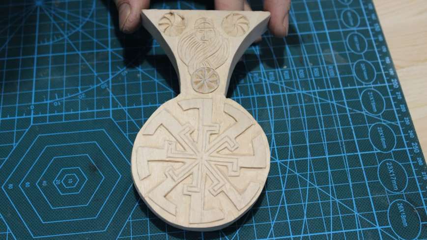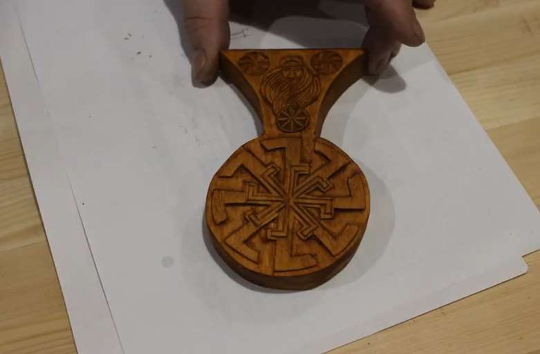 Le bois est également populaire. C'est le matériau le plus accessible pour fabriquer l'amulette elle-même. Le symbole est d'abord dessiné avec un crayon normal, puis gravé ou sculpté.