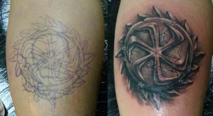 Si l'on considère le tatouage Kolovrat, on peut trouver un certain lien avec la croix gammée allemande, mais leurs valeurs sont fondamentalement différentes. Le Kolovrat slave est considéré comme un symbole du soleil et de la renaissance, un tatouage avec ce symbole est un excellent choix, ce qui n'est pas le cas avec le svastika.