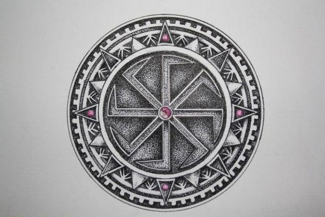 Les anciens Slaves croyaient que l'image était un talisman. On croyait que les dieux étaient les ancêtres de tous les vivants. L'image d'une roue était donc présente dans une vie sur tous les sujets.