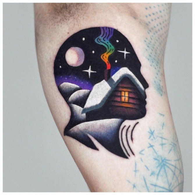 Lorsque nous sélectionnons des options de tatouage masculin, nous essayons toujours de faire en sorte que le dessin soit non seulement professionnel, mais aussi harmonieux. Ainsi, si vous transférez la première petite image sur votre bras, vous pouvez déjà imaginer à long terme ce que sera la "manche" entière si le tatouage devient un hobby.