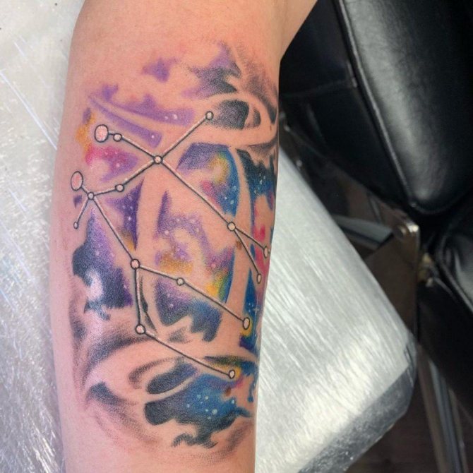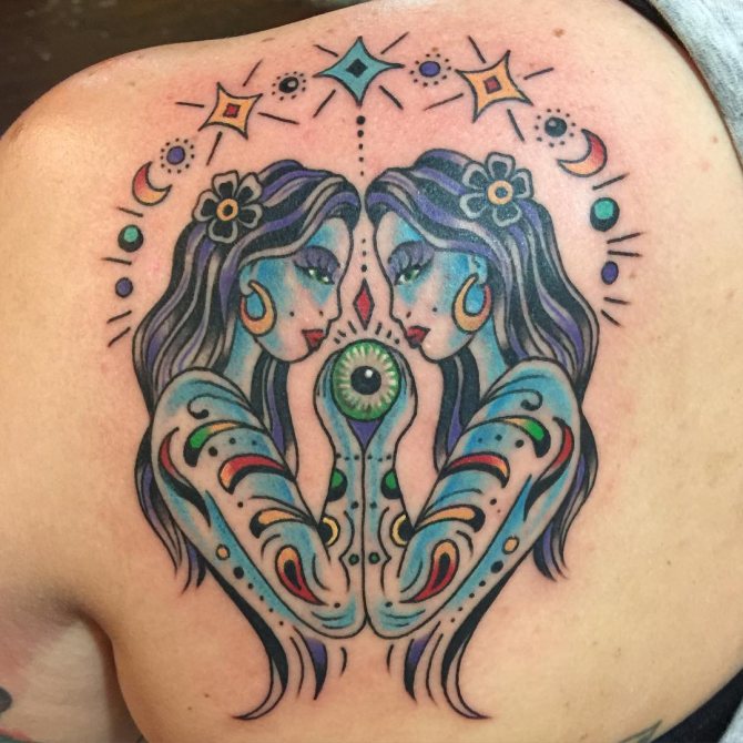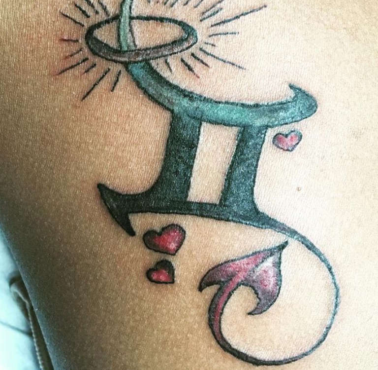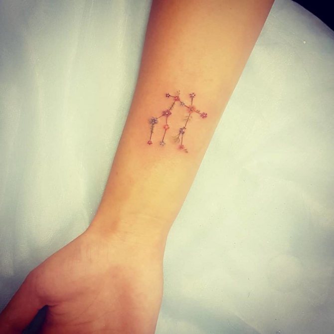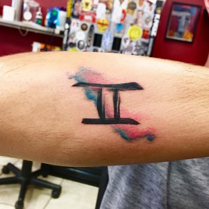 Si vous décidez de réaliser le symbole des Gémeaux, vous ne devez pas surcharger le croquis avec des détails supplémentaires compliqués. Le symbole doit jouer un rôle important dans le tatouage sans paraître trop volumineux ou encombré. Le symbole, la constellation, le visage et la silhouette des Gémeaux ne doivent pas être surchargés par une palette de couleurs vives. Le tatouage doit être placé modestement sur le corps, en ayant plusieurs qualités à la fois : être une décoration spectaculaire du corps et être un talisman pour son propriétaire.