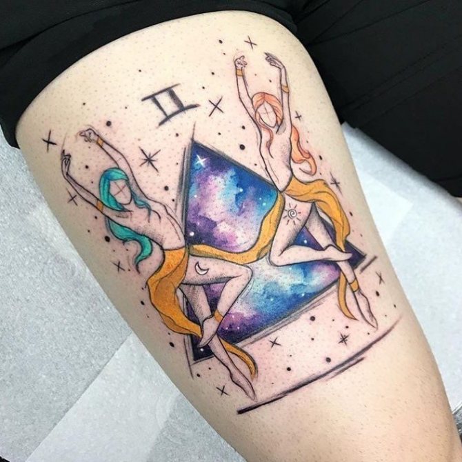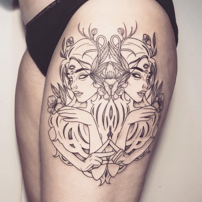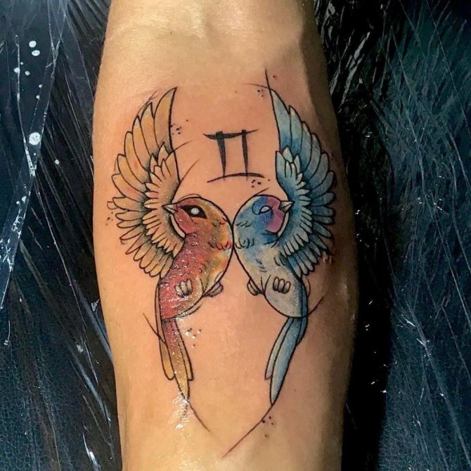 Le tatouage Gémeaux n'est pas seulement lié à l'appartenance d'une personne à ce signe du zodiaque. Il s'agit d'une description du caractère et des qualités fondamentales d'une personne. Si une personne attache de l'importance à l'image sur son corps et la considère comme un talisman, le tatouage l'aidera vraiment dans tous ses efforts.