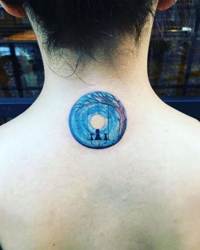 Le tatouage du cercle convient à une personne qui a une attitude raisonnable envers la vie, qui honore les canons de l'univers et le cycle de l'existence. Le tatouage Yin-Yang donne à son porteur la chance et l'équilibre en toute chose et protège contre la négativité.