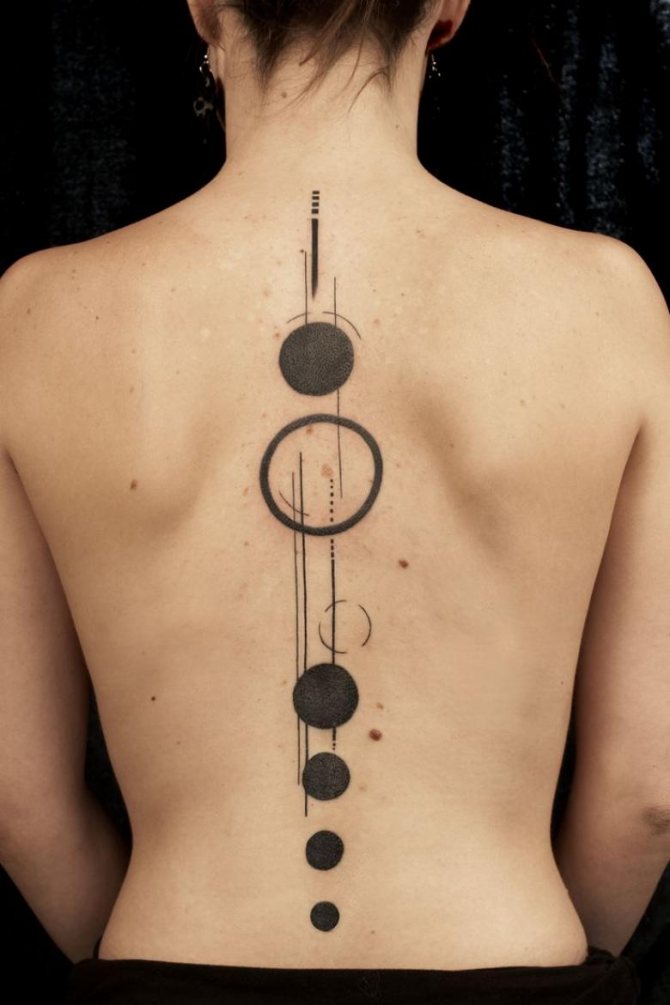 Cercles à la mode sur le ventre, les hanches, les mollets, le cou. Le cercle de tatouage sur le dos est très élégant, surtout si la composition est bien combinée.