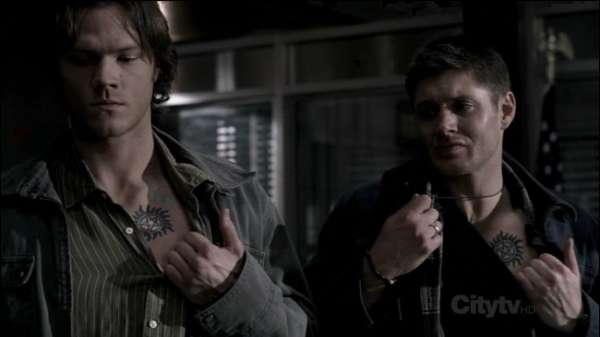 - Pendant la chasse, le gars devient possédé par des démons et Dean et Sam décident alors de lui faire des tatouages anti-possession pour l'empêcher d'être possédé par des démons.