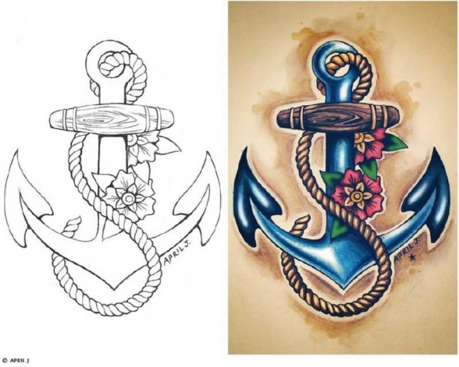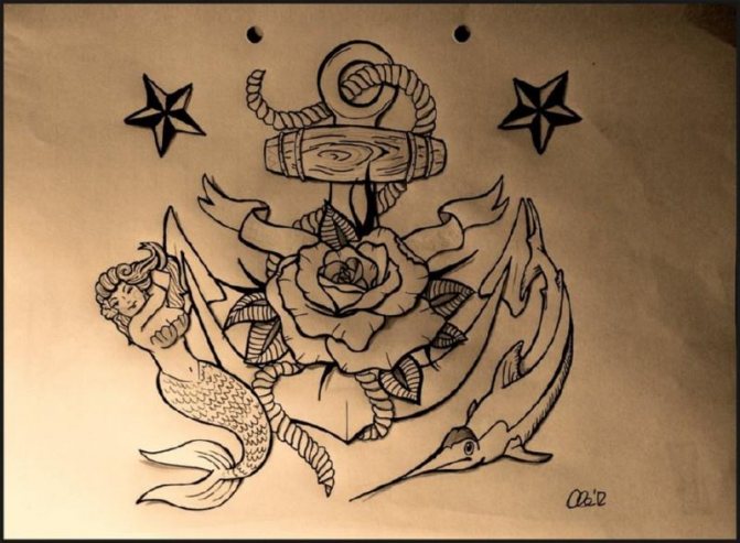 Aujourd'hui, les croquis dans le style de l'ancienne école sont les plus populaires dans le thème maritime et il y a une explication - ce sont les marins au VIIIe siècle, ont d'abord commencé à faire sur leurs corps, de tels ornements. Elles symbolisaient des événements très importants survenus en mer ou étaient portées comme un talisman. À l'époque, les gens essayaient de ne pas faire de tatouages aux endroits les plus visibles, car cela était considéré comme honteux. La plupart du temps, les symboles nautiques étaient portés sur les bras afin qu'ils ne soient pas visibles sous les vêtements.