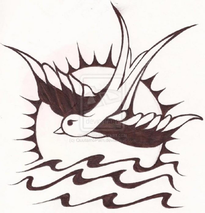 Le tatouage de la mer peut simplement représenter un souvenir agréable du temps passé au bord de la mer. Un tel tatouage suscitera toujours des émotions agréables chez une personne.